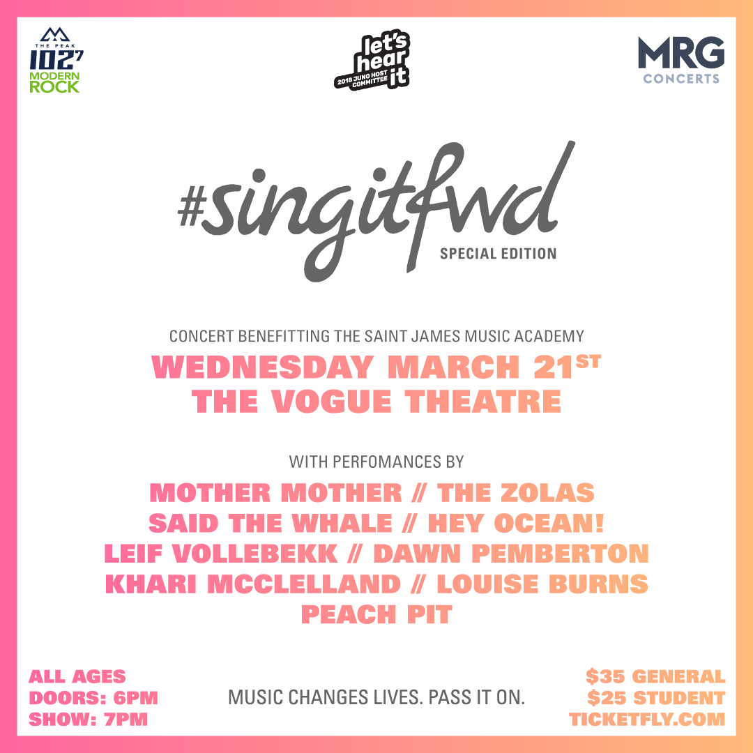 Partial proceeds will go to suppport the Lullaby Project facilitated by Instruments of Change, a Vancouver-based community arts non-profit.